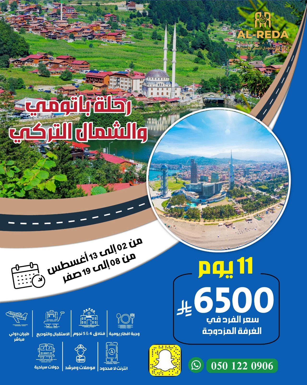 باقات الشمال التركي – كل سبت رحلة استمتع بعطلة لا تُنسى في قلب الطبيعة التركية، حيث الجبال الخضراء، الشلالات، والهواء النقي! نقدم لكم باقتين مميزتين تشملان الطيران، الفنادق، وجولات يومية لزيارة أجمل معالم طرابزون وأوزنجول. الرحلة تبدأ كل يوم سبت من جدة، وتشمل كل ما تحتاجه لراحة واستجمام كامل.